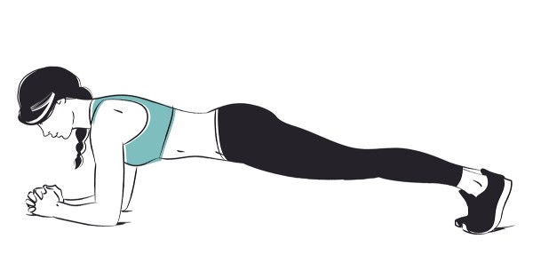استلقي على الأرض بحيث يقابل وجهك الأرض، وثبتي الكفين على الأرض، وارفعي المنطقة العلوية من الجسم مع التركيز على الذراعين، والحفاظ عليها في شكل مستقيم.