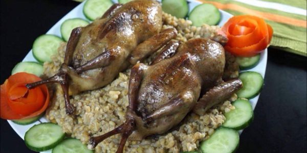 - رقبة الحمام في هذا الطبق يجب أن تكون مكتملة، وليست مقطوعة، لذلك يجب أن تخبري صاحب المحل بذلك.